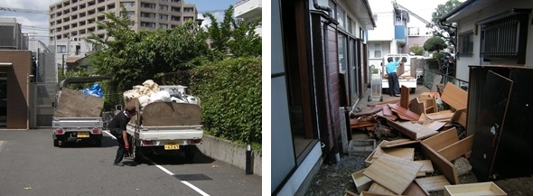 - 家具は、現場で解体し、板にしてトラックに積み込みます。
