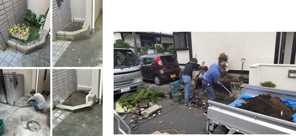 - コンクリート枠の花壇、コンクリブロックの花壇、レンガの花壇、すべて撤去可能です。